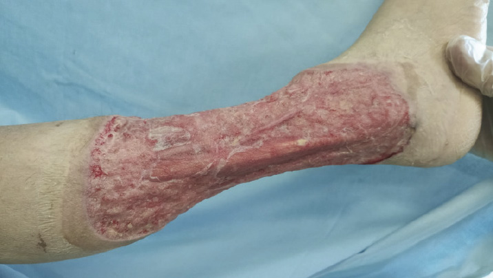 Рис. 5. Вид конечности 25 января 2022 г. (спустя 2 месяца после аутодермопластики)