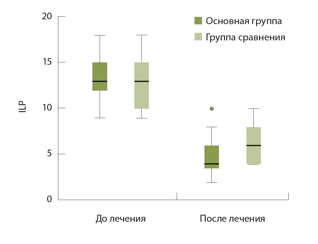 ILP | до лечения | 13 (12–15) | 13 (12–15) | 13 (10–15) | 0,801 |