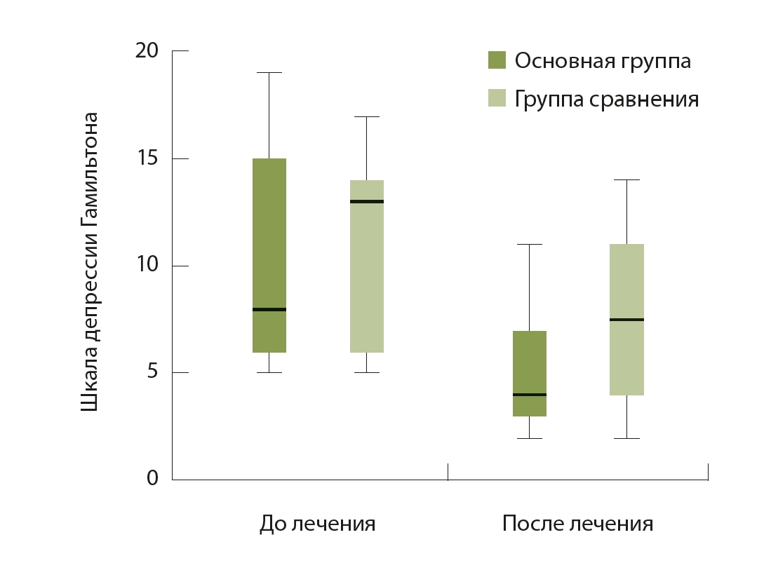 Рис. 4. Показатели шкалы депрессии Гамильтона до и после лечения