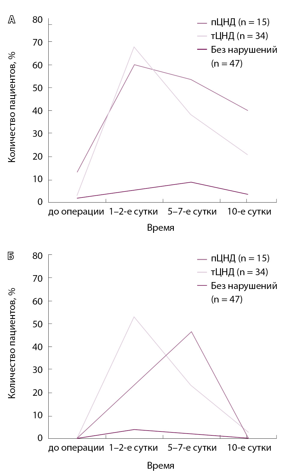 БН – без нарушений, п/о – после операции, пЦНД – постоянный центральный несахарный диабет, тЦНД – транзиторный центральный несахарный диабет