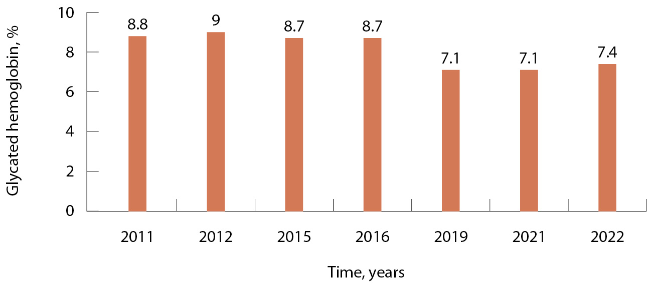 Рис. 1. Динамика гликированного гемоглобина у пациента Т. (2011–2022 гг.)