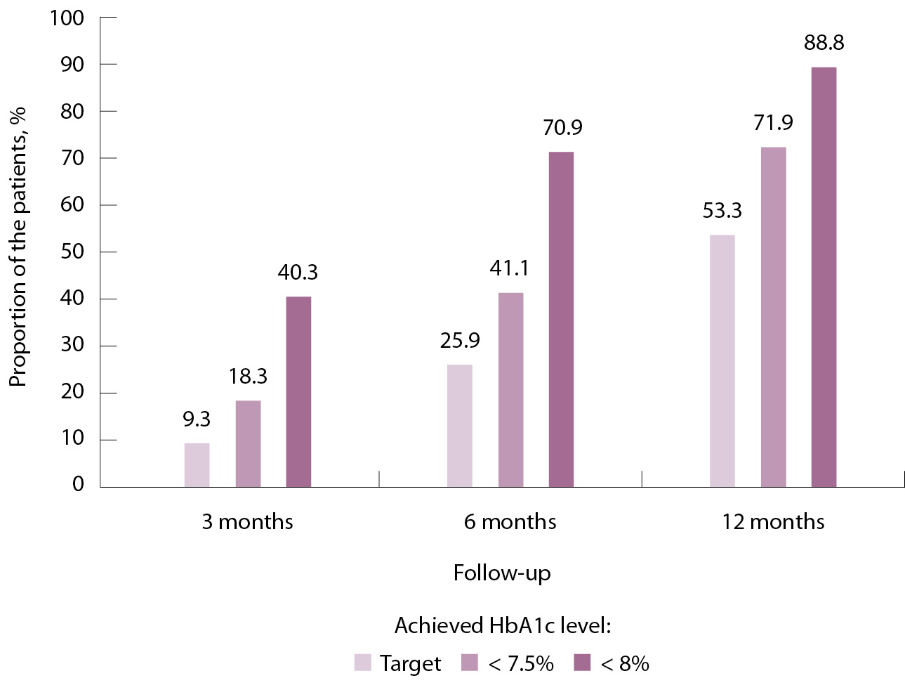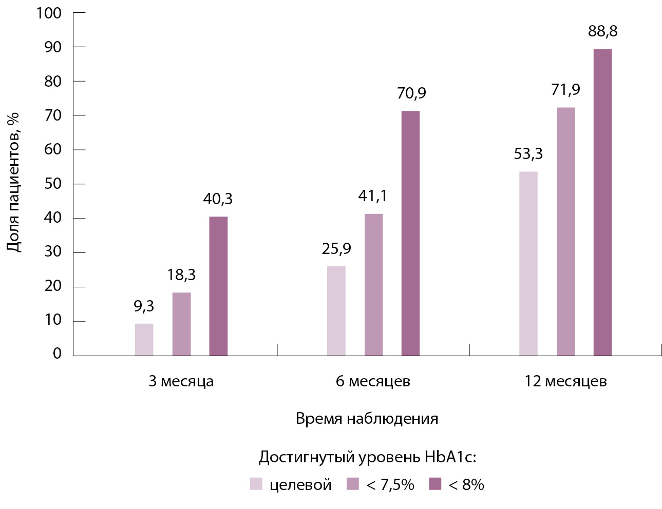 Рис. 1. Достижение уровня HbA1c