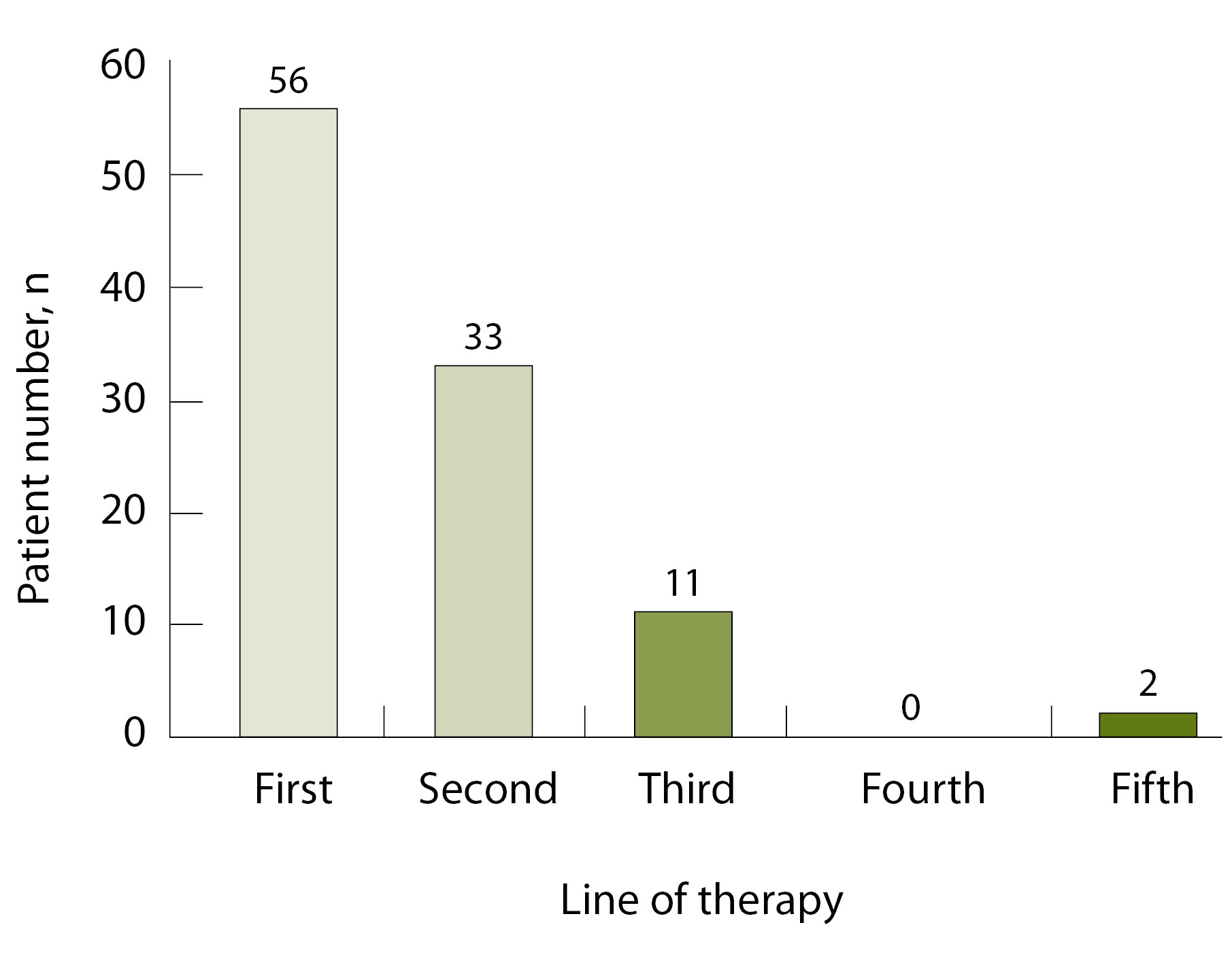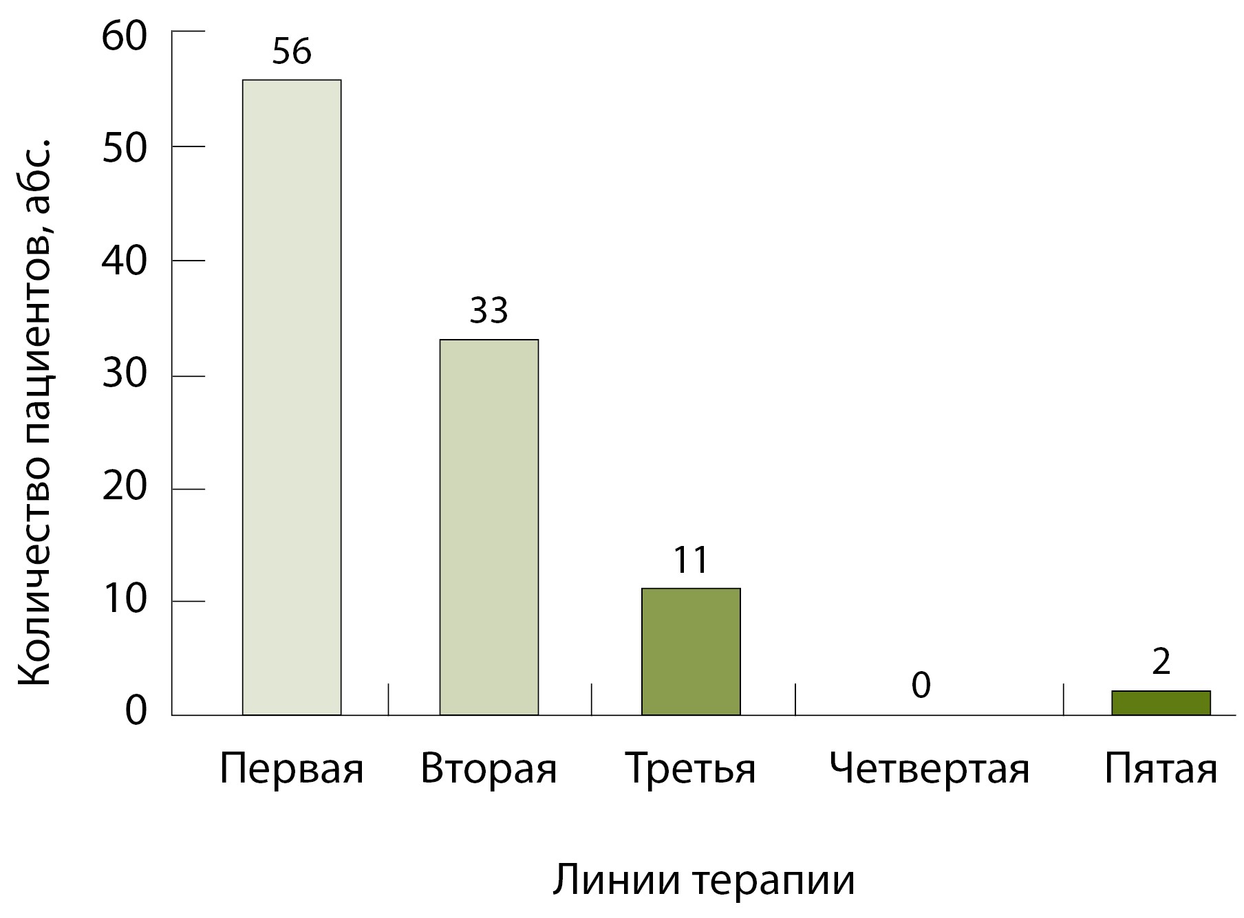Рис. 4. Ингибиторы контрольных точек иммунного ответа как линия противоопухолевой терапии в исследуемой выборке (n = 102)