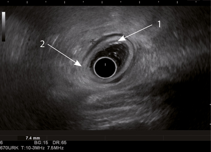 Рис. 2. Эндосонографическая картина стенки толстой кишки в норме