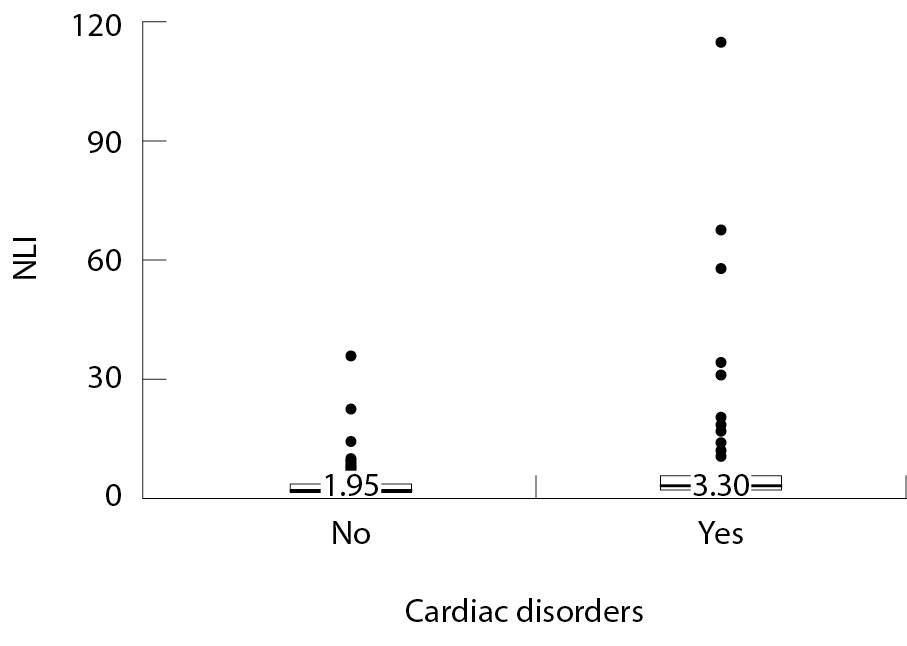 Aim: To evaluate the clinical value of NLI in hospitalized patients with COVID-19 depending on their concomitant cardiac disorders.